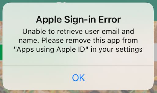 Subsequent logins do not return this information. So the user’s name and email are stored locally in the iOS Keychain. This works fine unless the user decides to delete the app, which also removes their local Keychain. If the user reinstalls the app and uses Apple Sign-in again, an error is shown to the user.